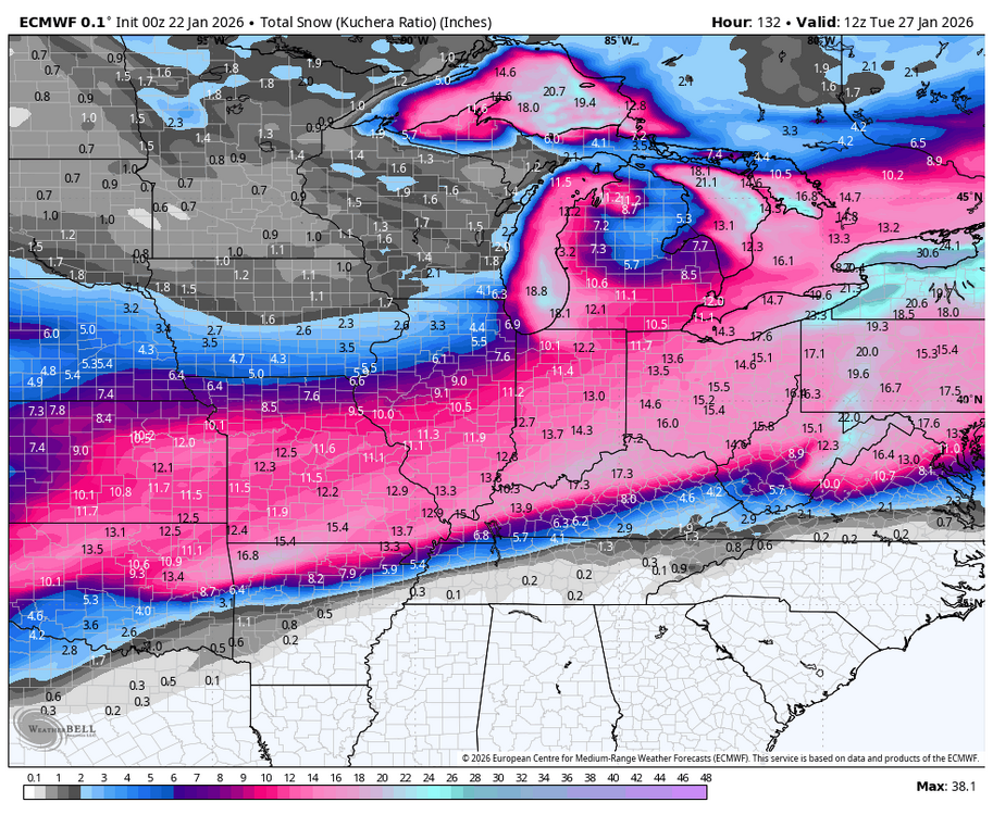 So they clearly believe that the highest snow totals will indeed be through Columbus.