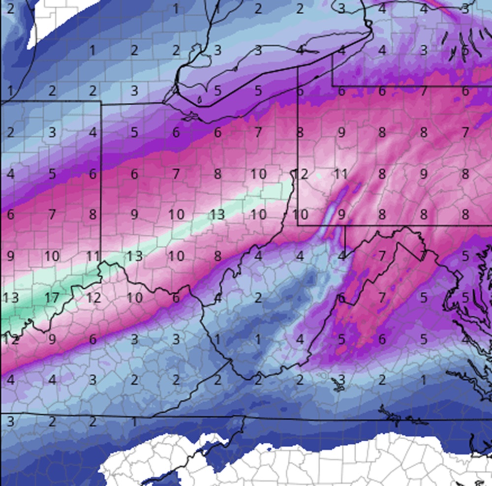 6Z GFS- 10″-12″ (10-1 Ratio)- GFS is not a short-range model, but it has gone much higher with snow totals in Ohio, now bringing 14-15″ into the southern 1/3rd, and thats on 10-1. Should ratios be higher, it’s actually predicting 17″-18″ for part of the state, and Columbus would get 13″-14″ as well.