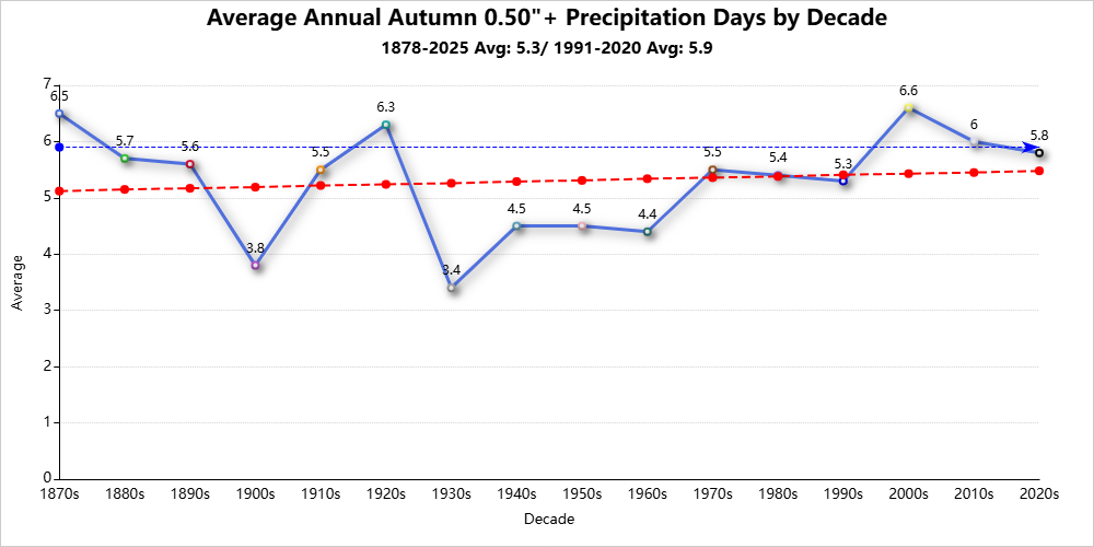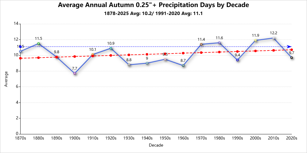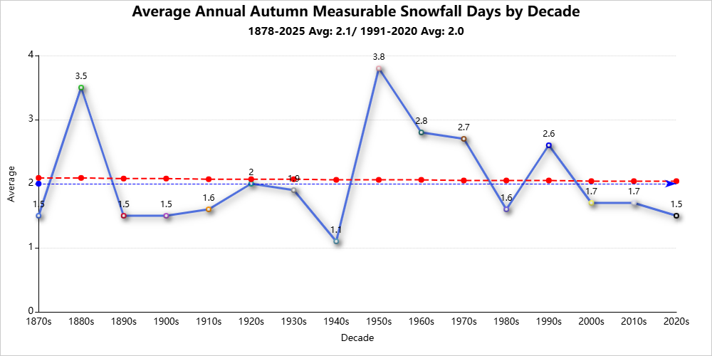Top 10 Autumns with the Most Measurable Snowfall Days