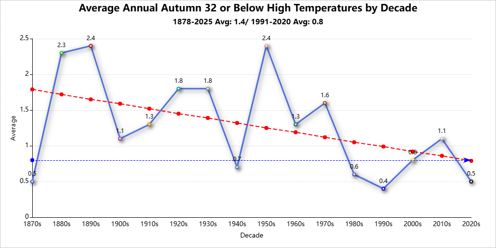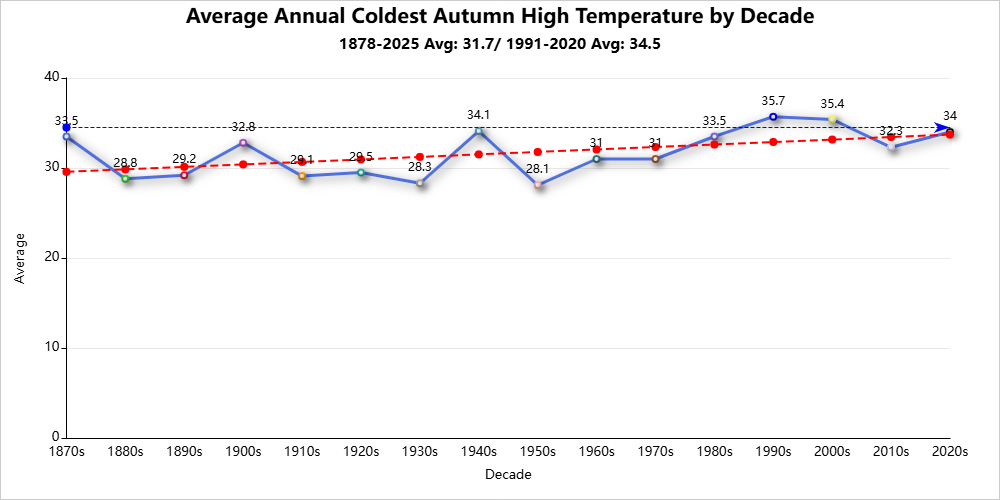 Top 10 Coldest Autumn Highs