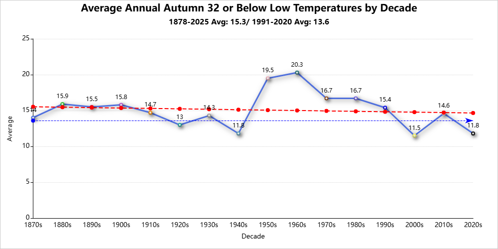 Top 25 Autumns with the Coldest Average High