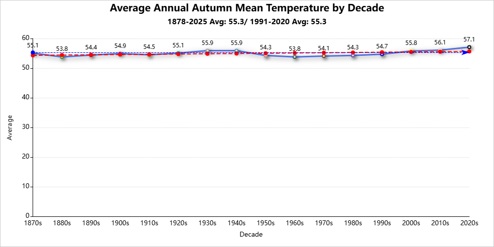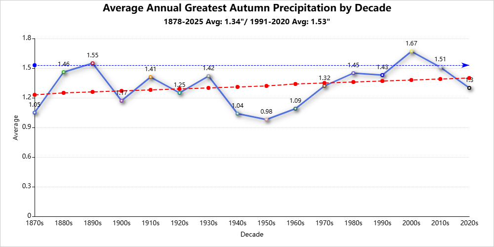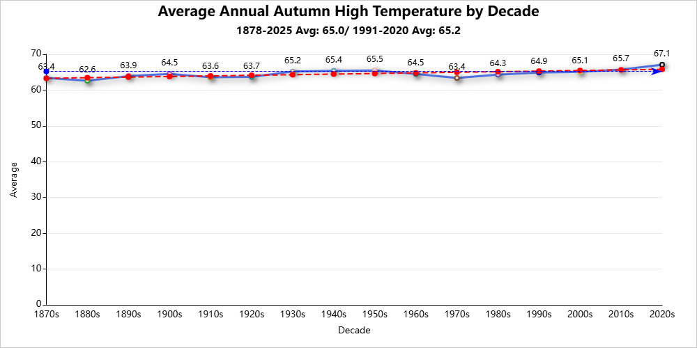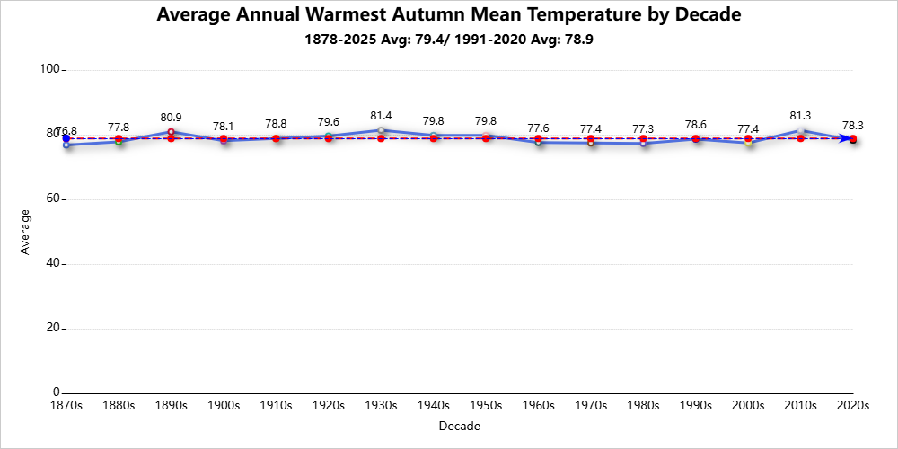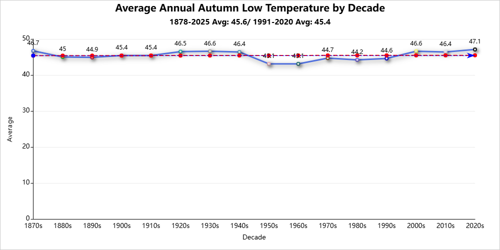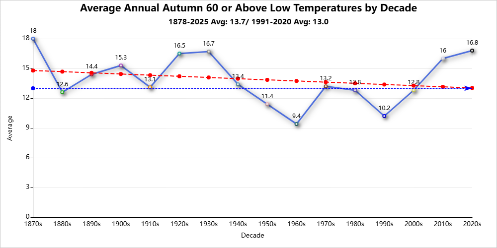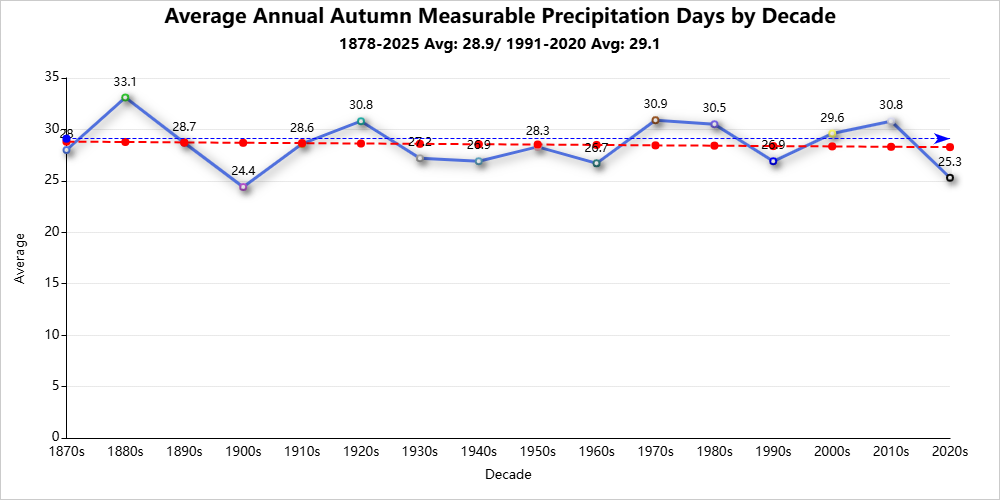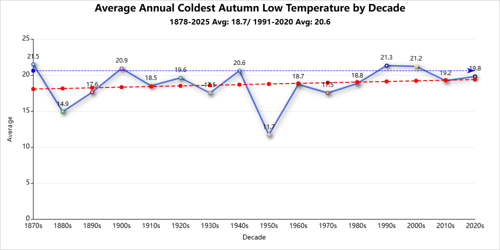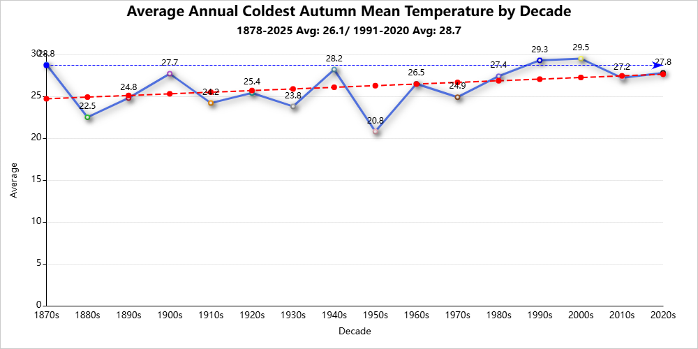 Autumn season records are for the period 1878-2025