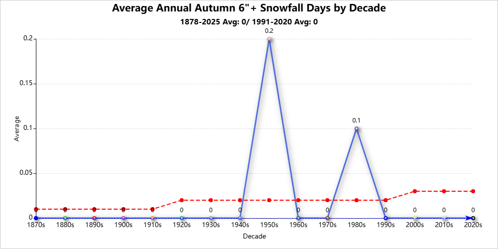 Top 10 Autumns with the Most 6″+ Snowfall Days