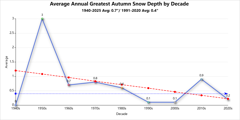 Top 10 Autumn Days with the Most 1″+ Snow Depth