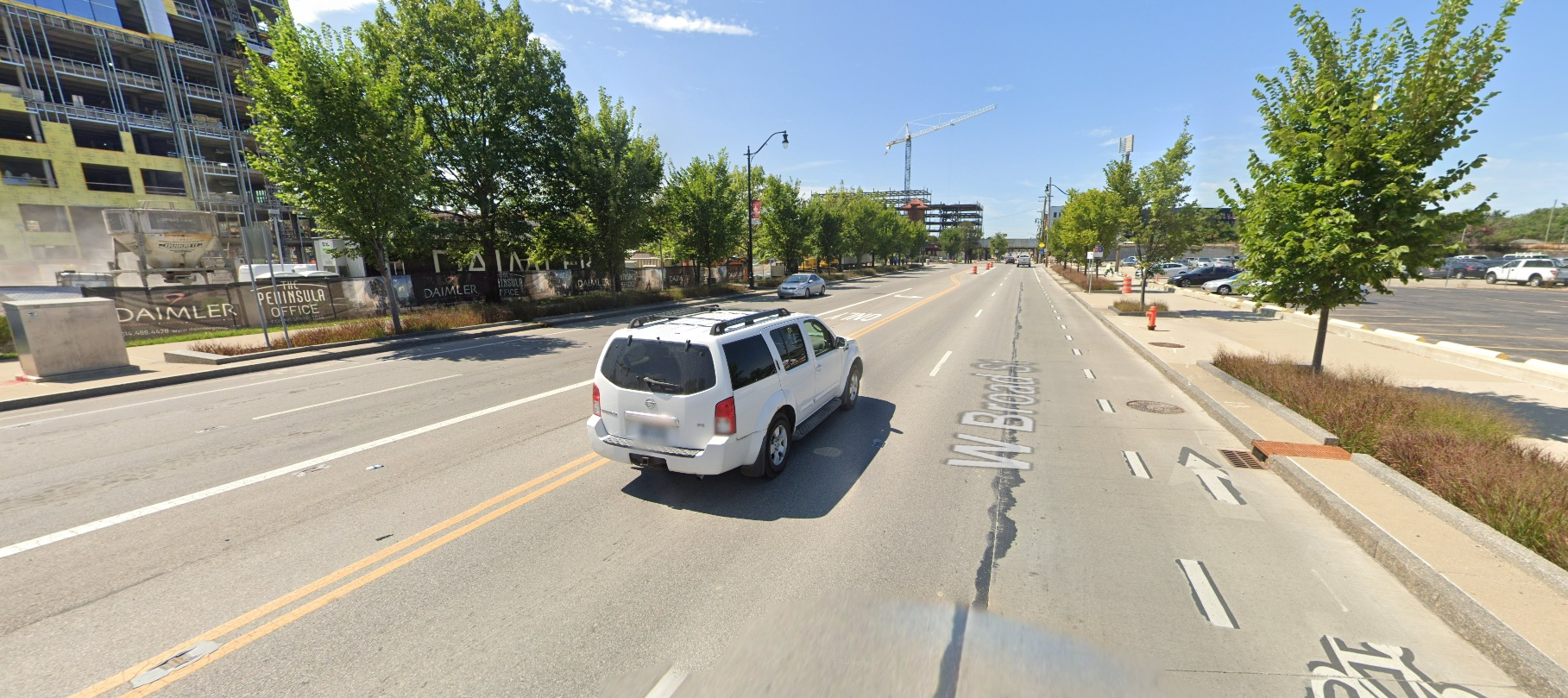 Before: West Broad Street, looking northwest from Hague Avenue in 1945.