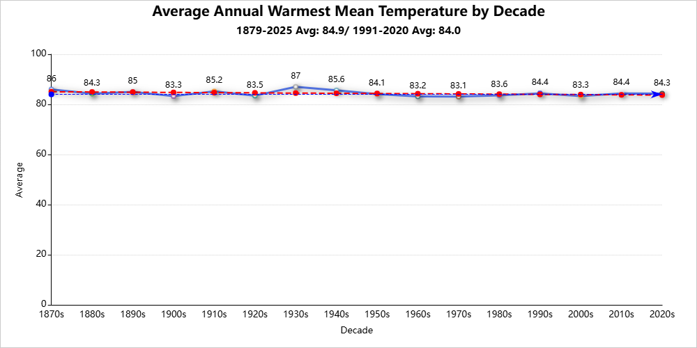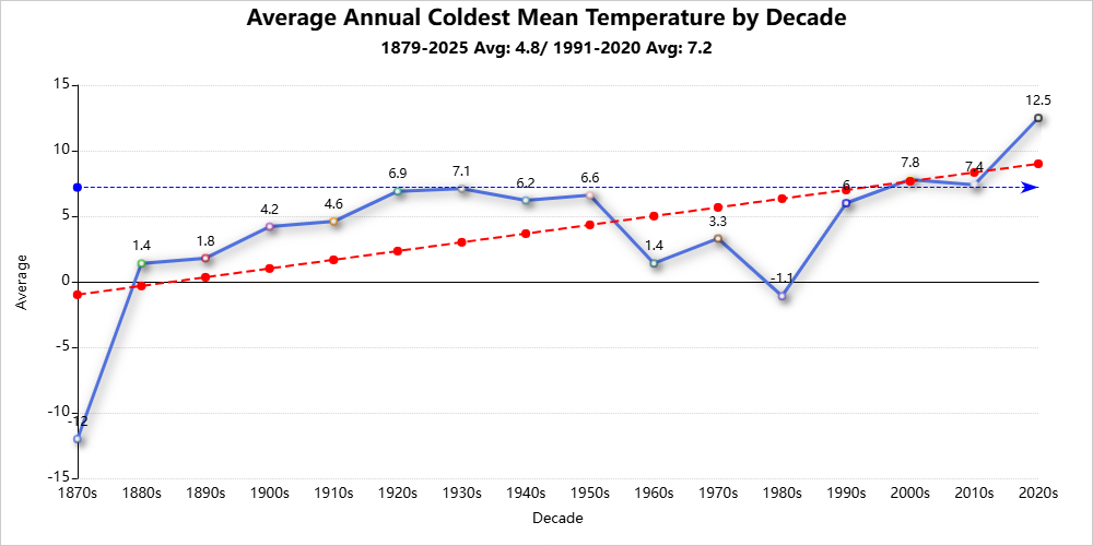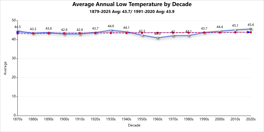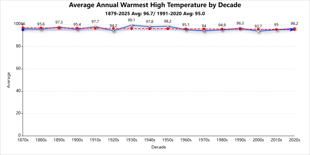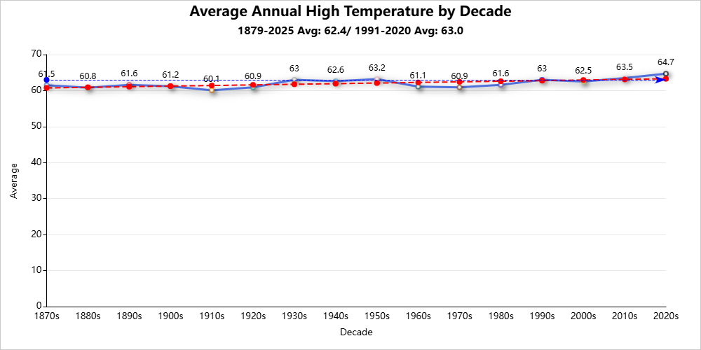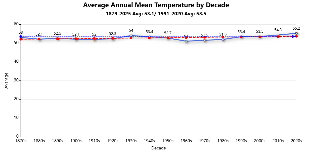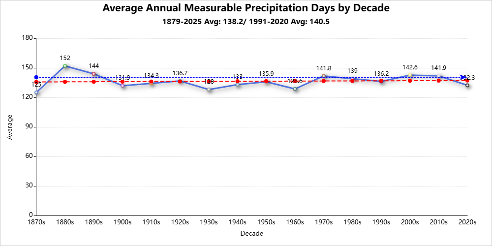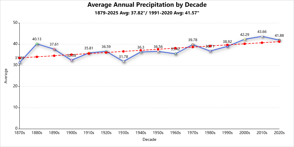 This page contains all annual weather records. Statistics include the years 1879-2025.
