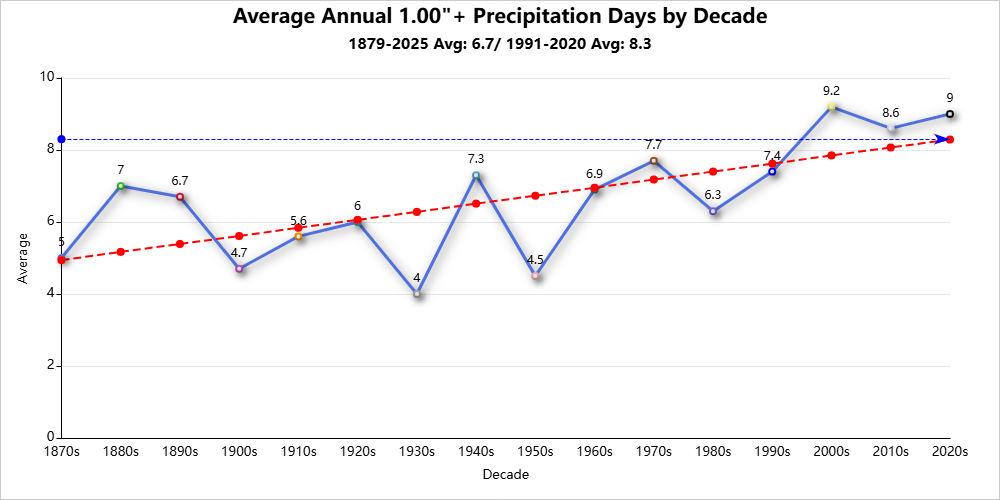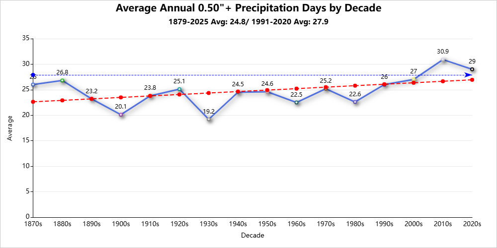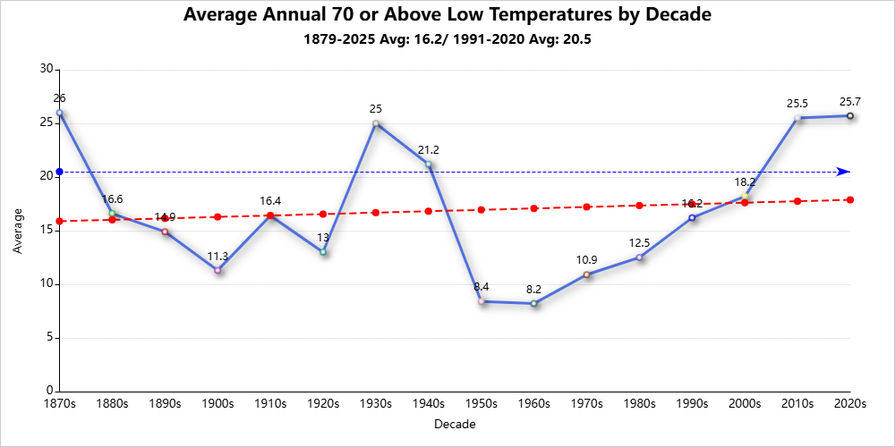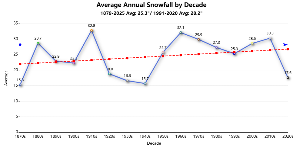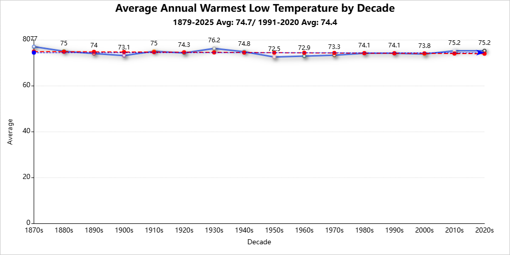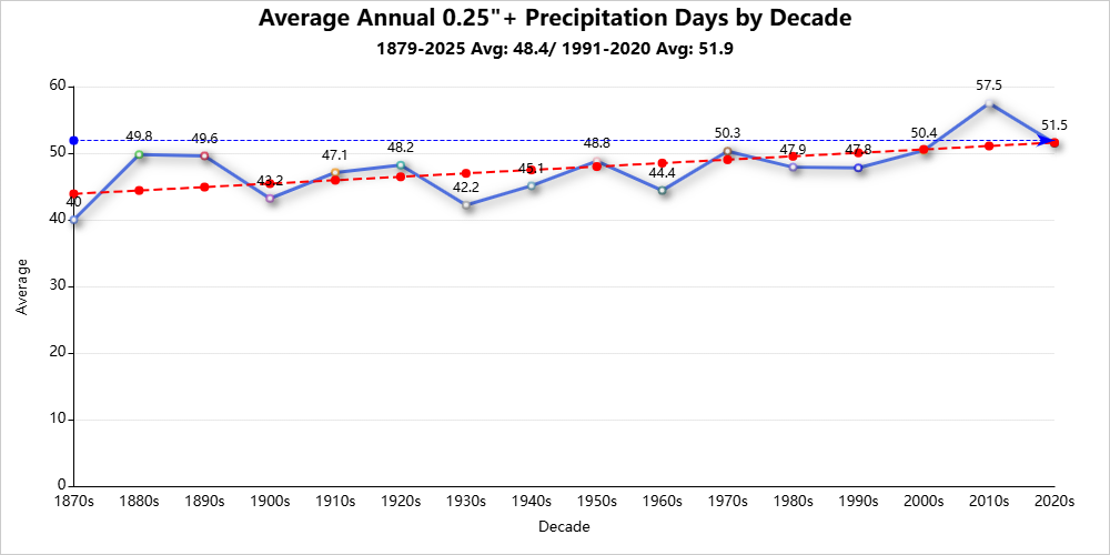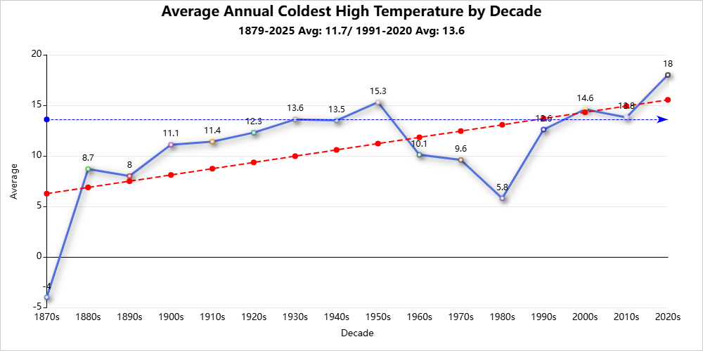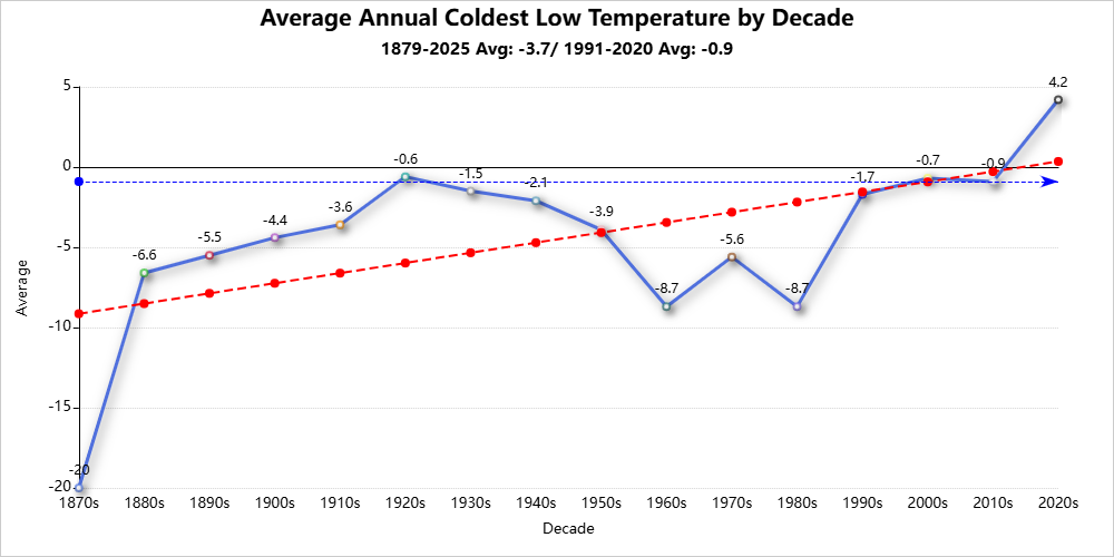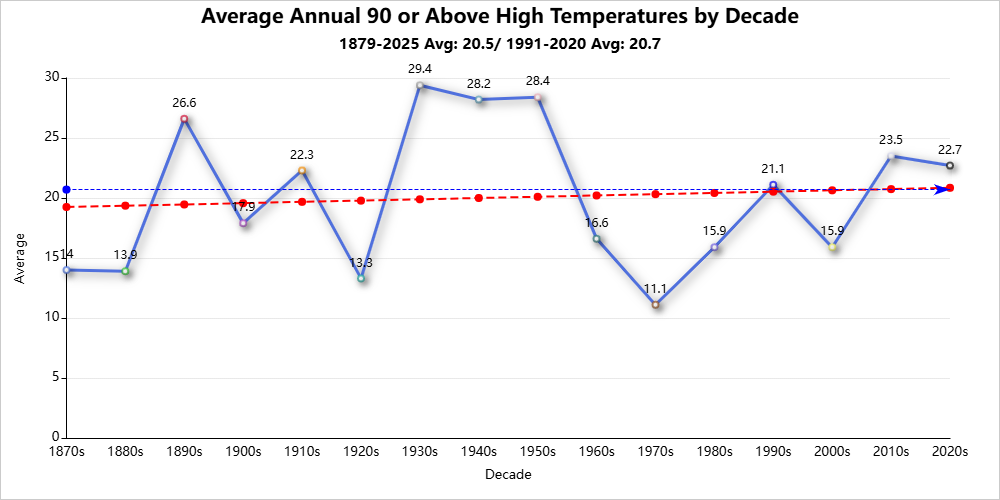 This page contains all annual weather records. Statistics include the years 1879-2025.