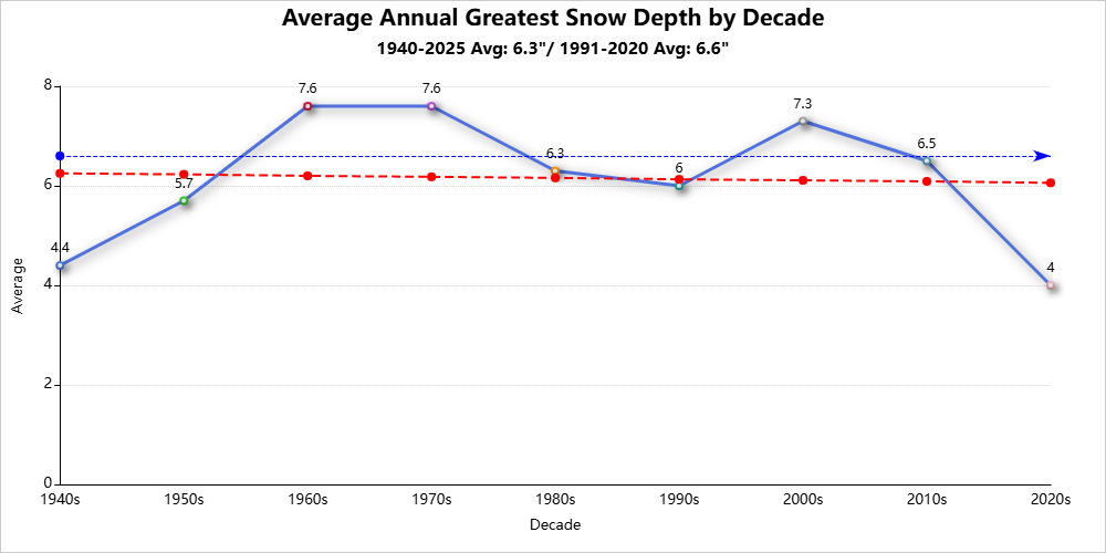 Top 25 Years with the Highest Maximum Daily Snow Depth (1940-2025)