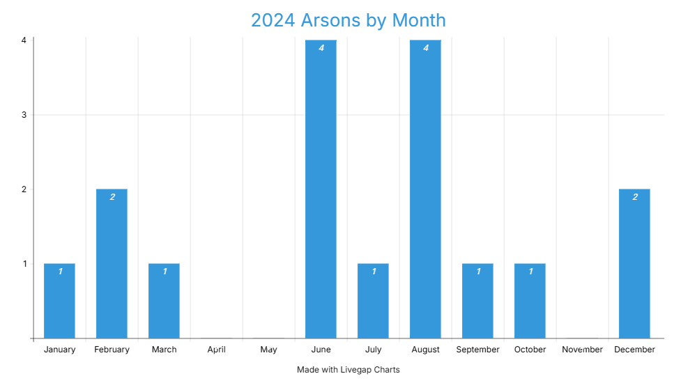 2024 crime total arsons by month