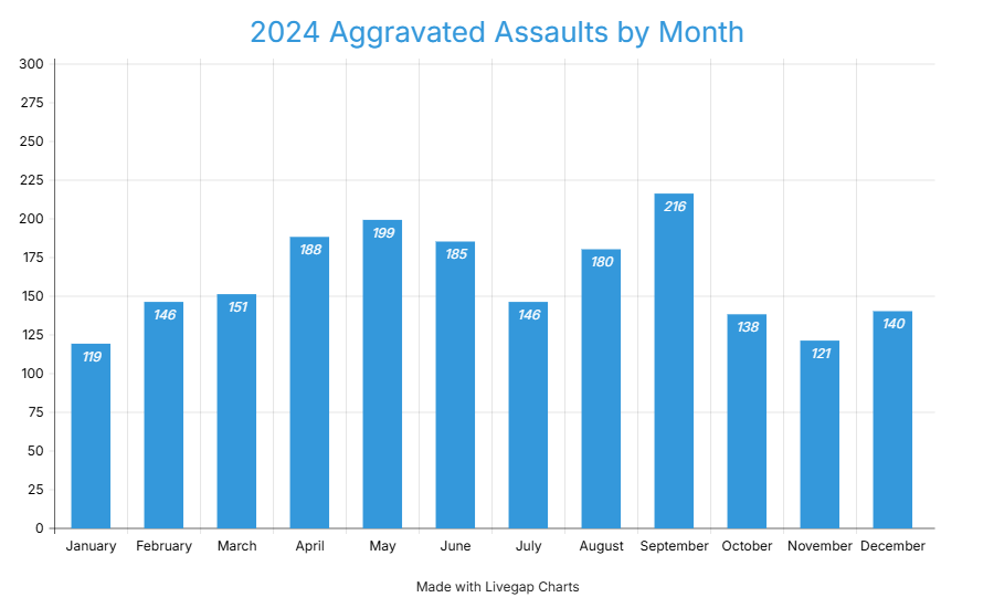 2024 crime aggravated assaults by month