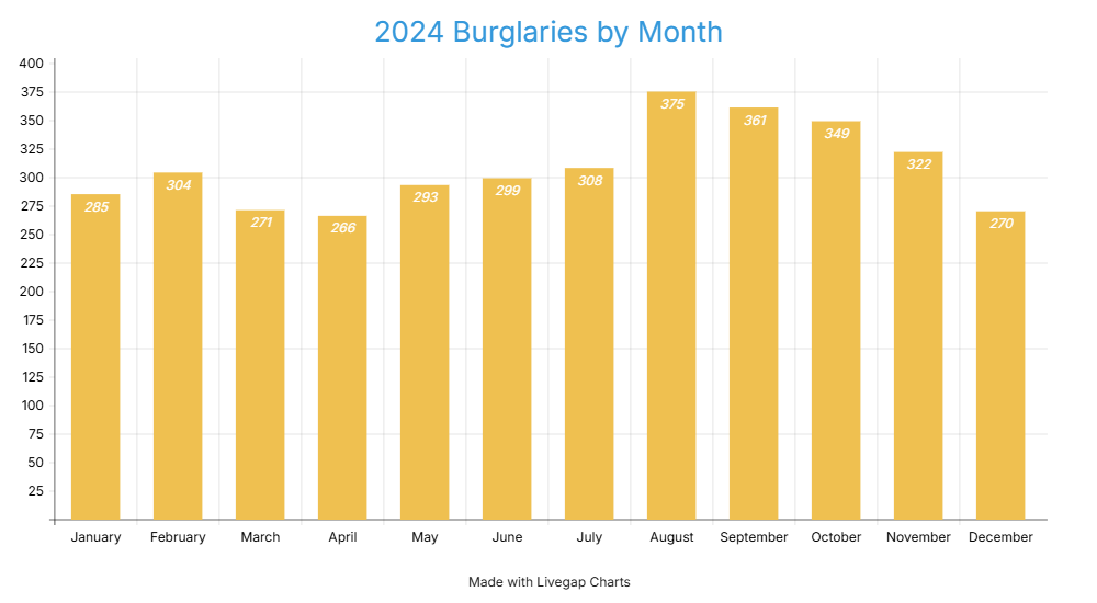 2024 crime total burglaries by month