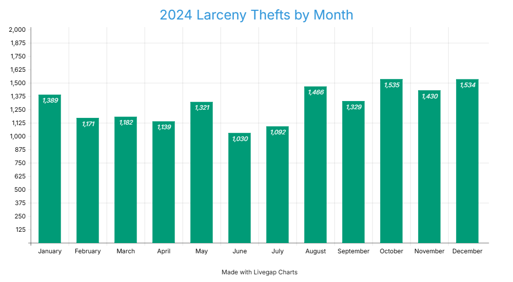 2024 crime total larceny thefts by month