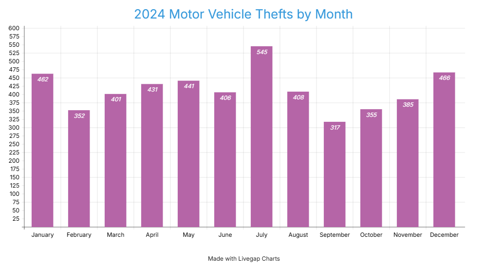 2024 crime total motor vehicle thefts by month
