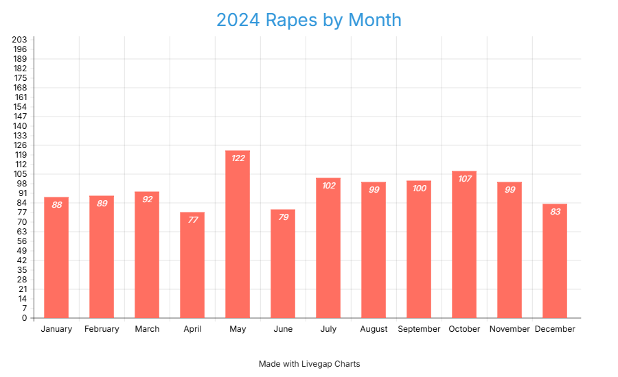 2024 crime rapes by month