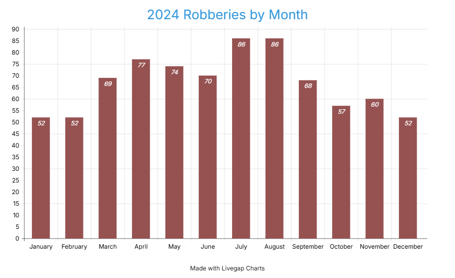 2024 crime robberies by month