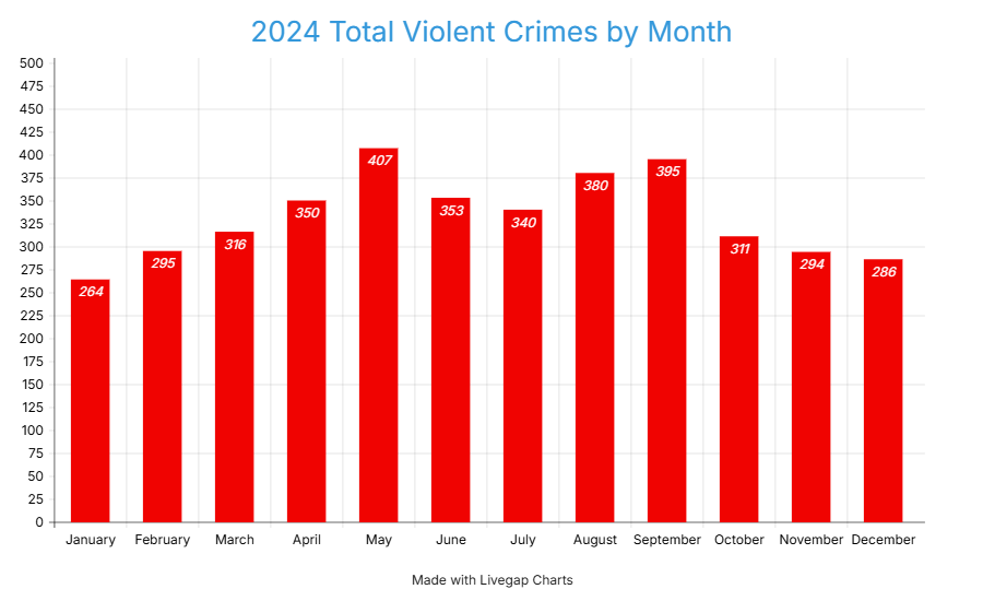 2024 crime total violent crimes by month