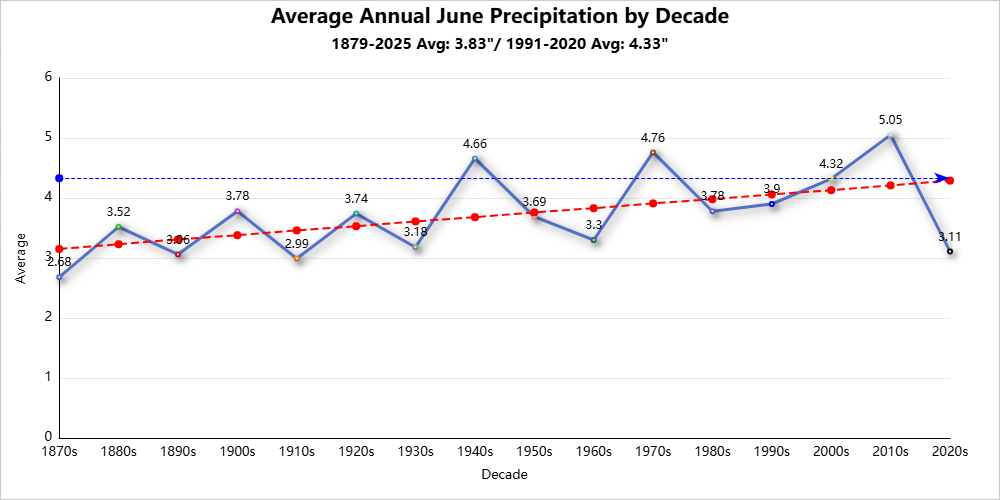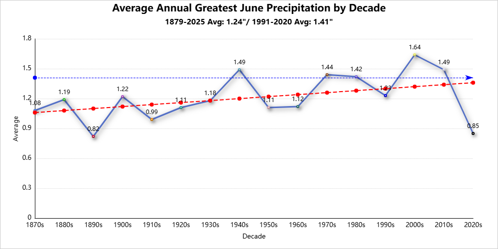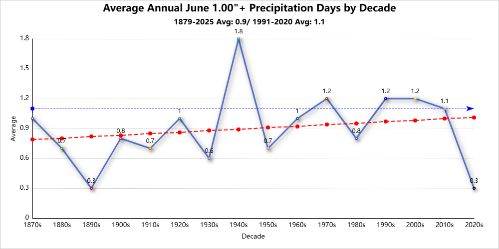 Top 5 Junes with the Most 1″+ Precipitation Days