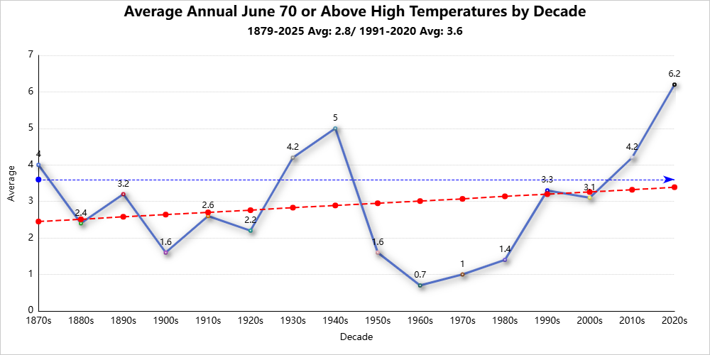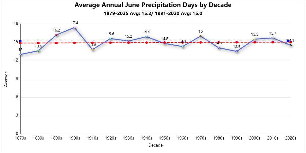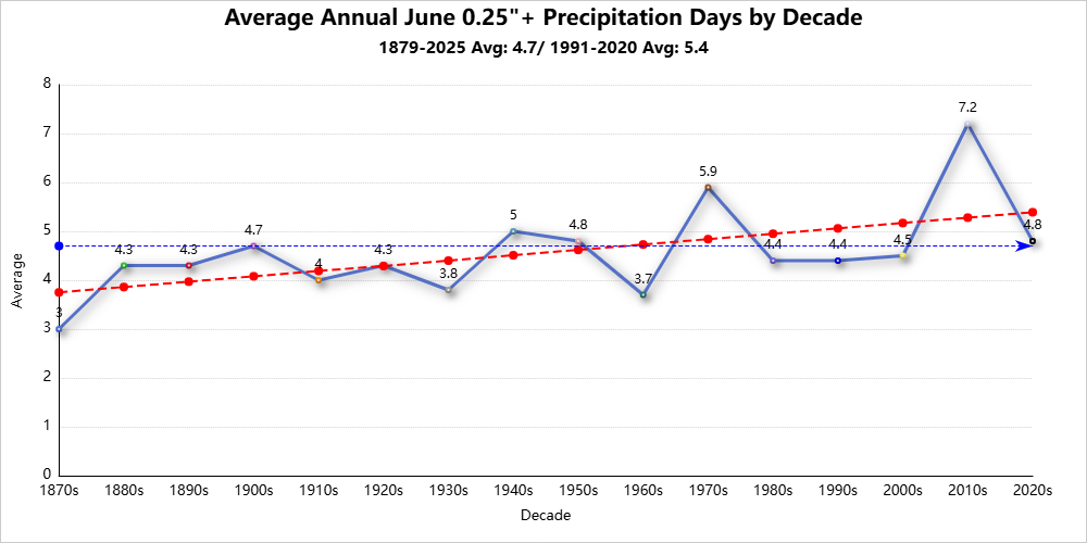 Top 5 Junes with the Most 0.25″ Precipitation Days