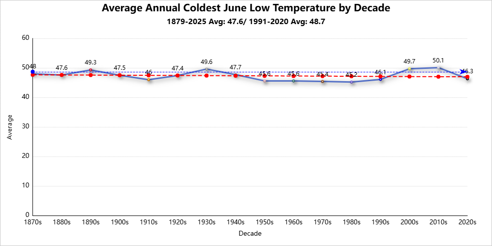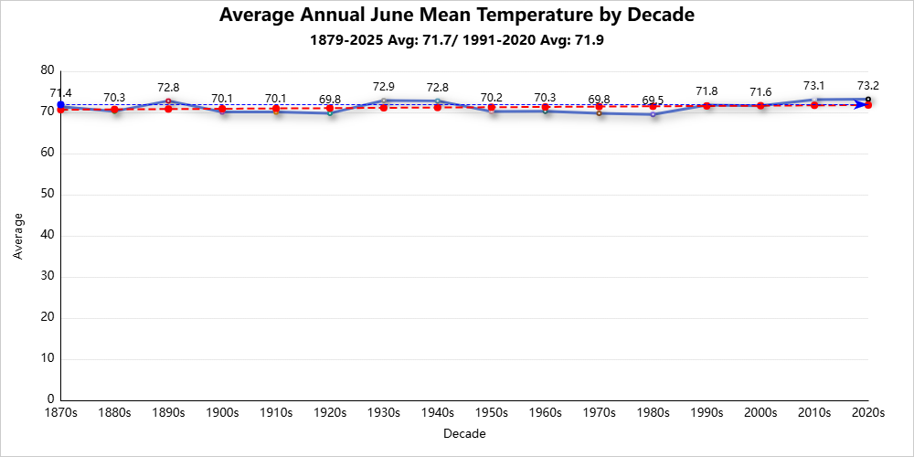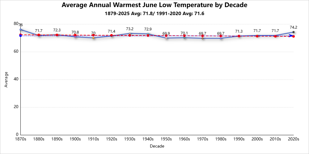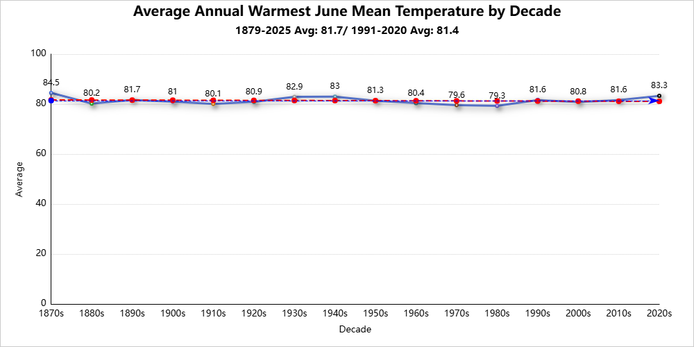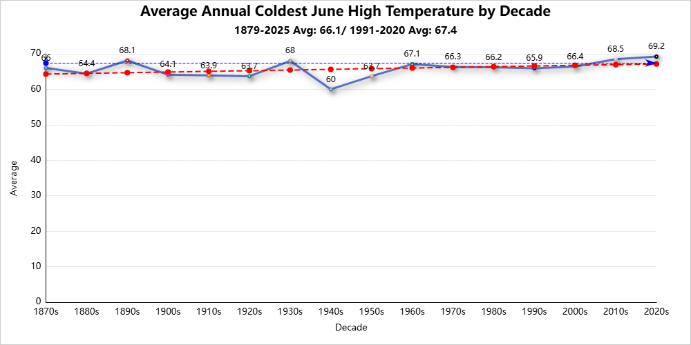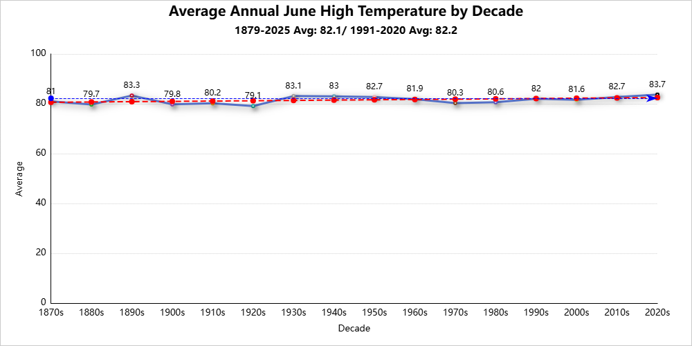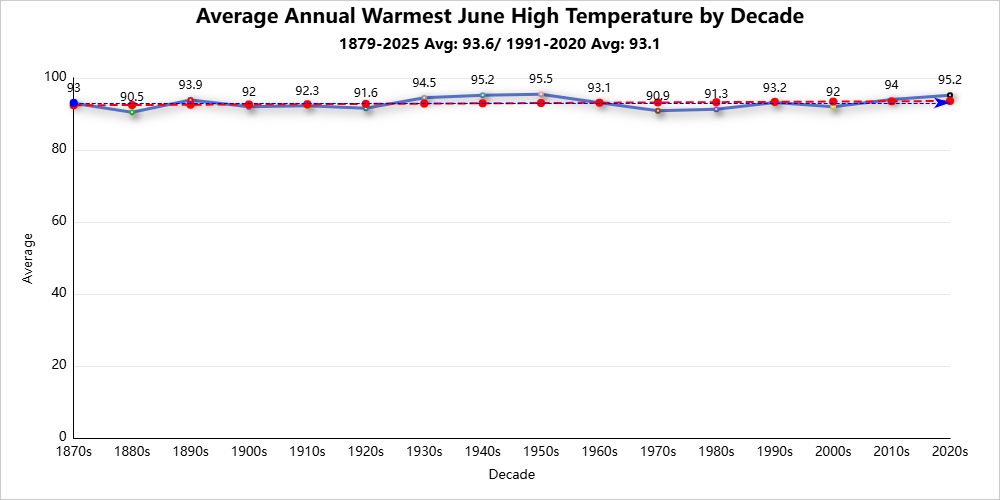 Top 5 Junes with the Largest Temperature Range (Warmest High to Coldest Low)