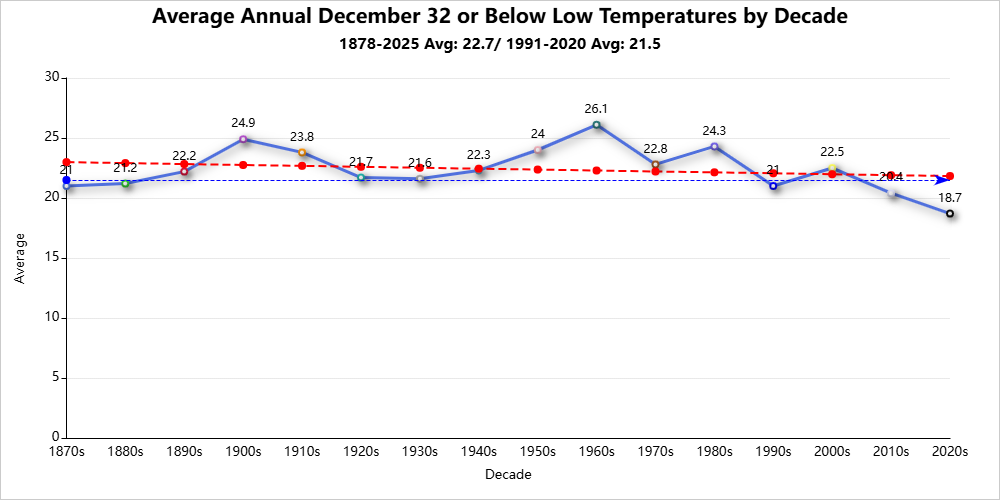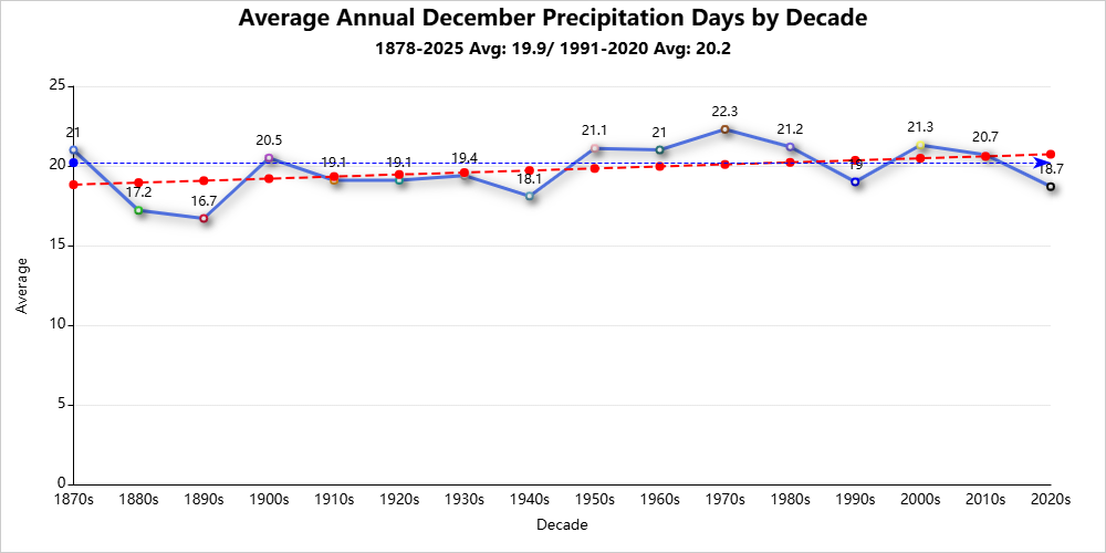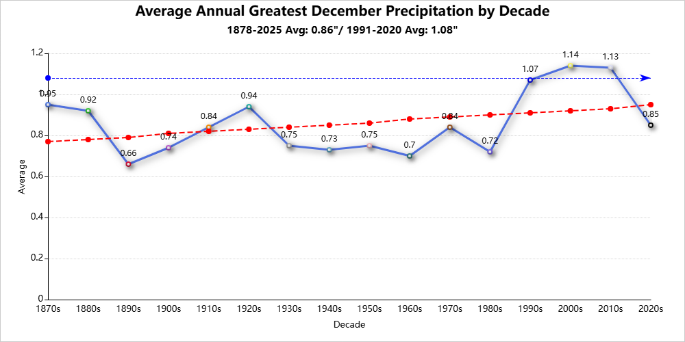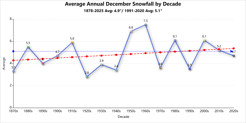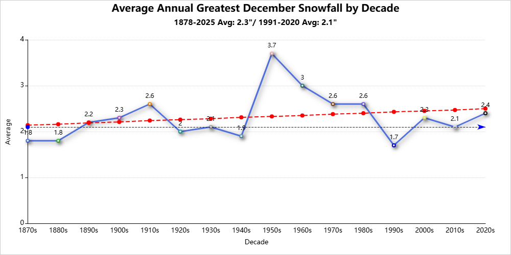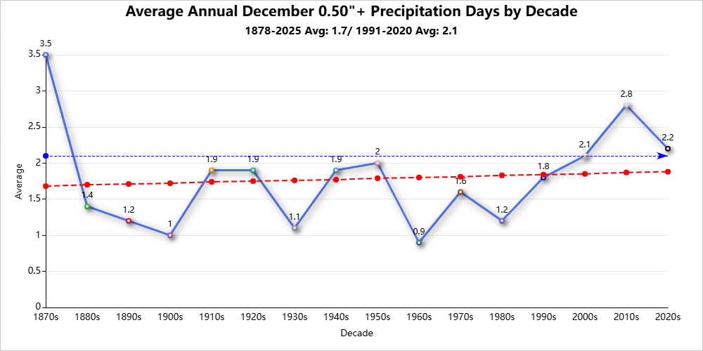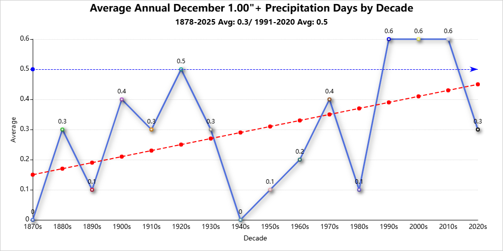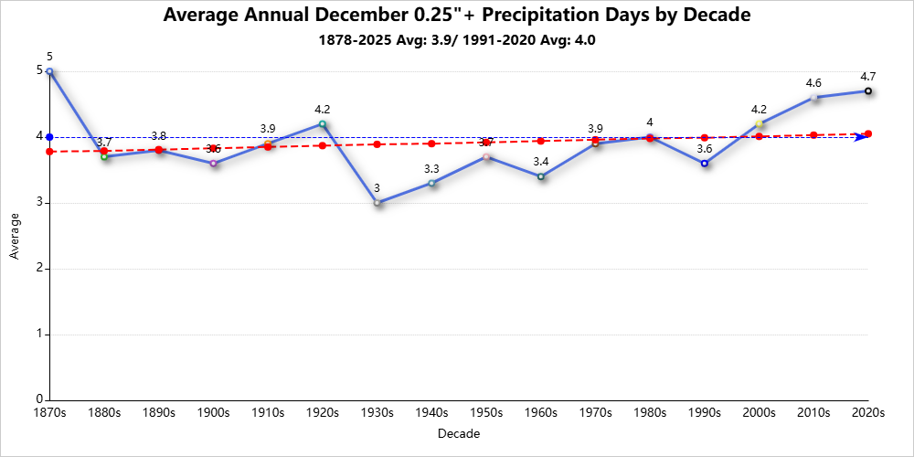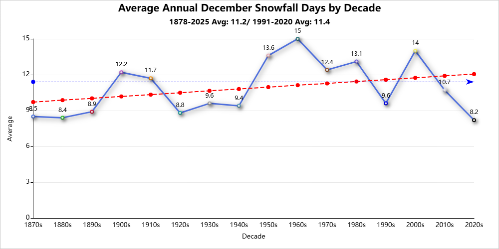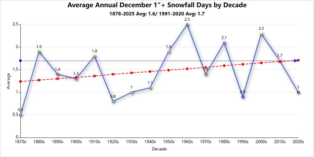 Top 5 Decembers with the Most 1″+ Snowfall Days