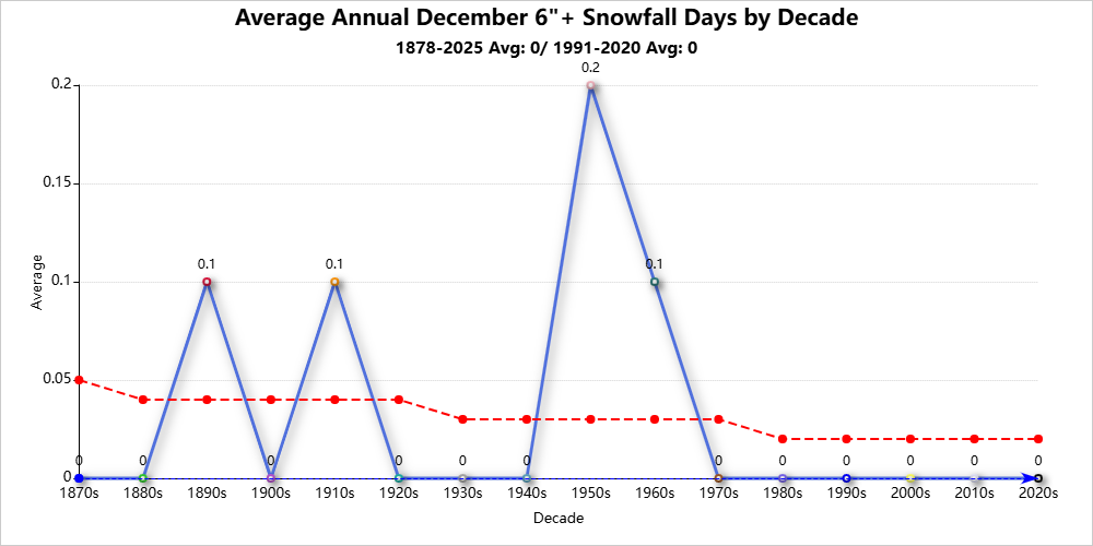 Top 5 Decembers with the Most 6″+ Daily Snowfall Days