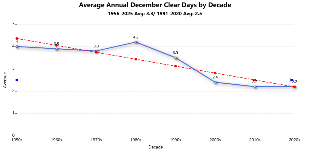 Top 5 Decembers with the Most Clear Days Since 1956*