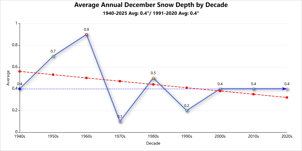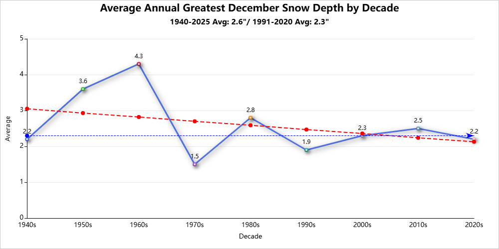 Top 5 Decembers with the Greatest Average Snow Depth 1940-2025