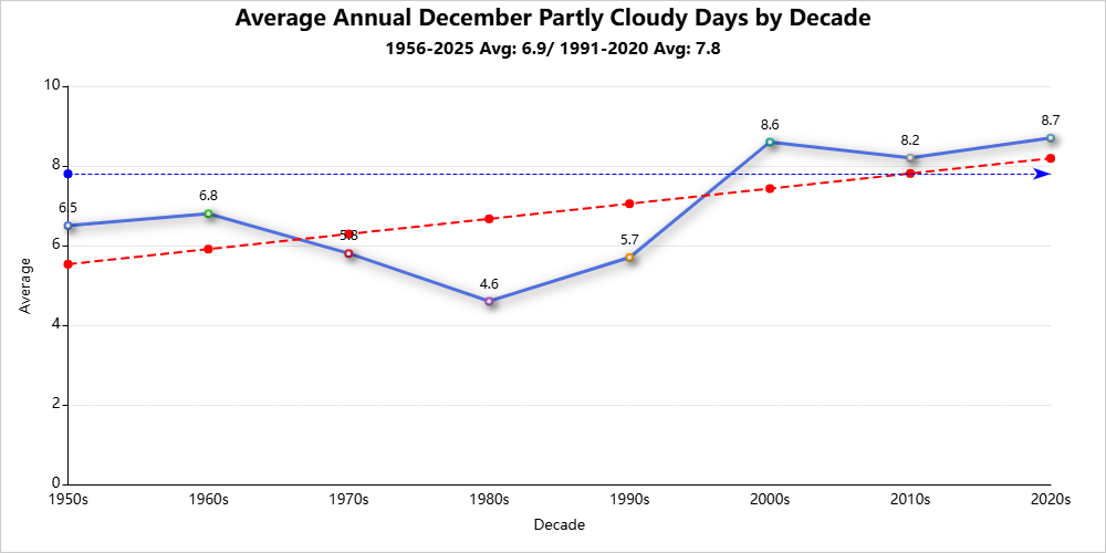 Top 5 Decembers with the Most Partly Cloudy Days Since 1956*