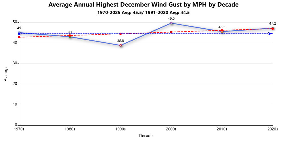 Top 5 Decembers with the Highest Wind Gust in MPH Since 1970