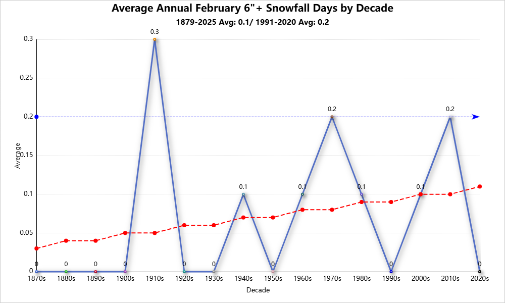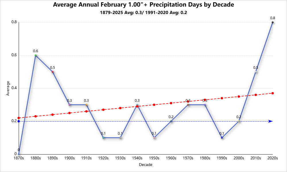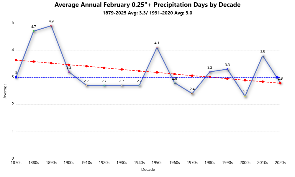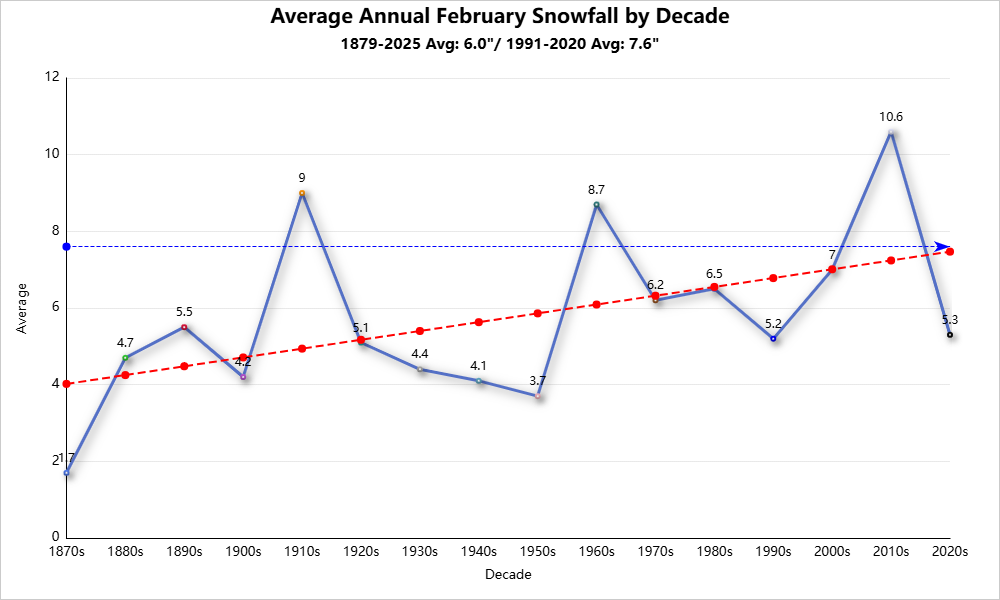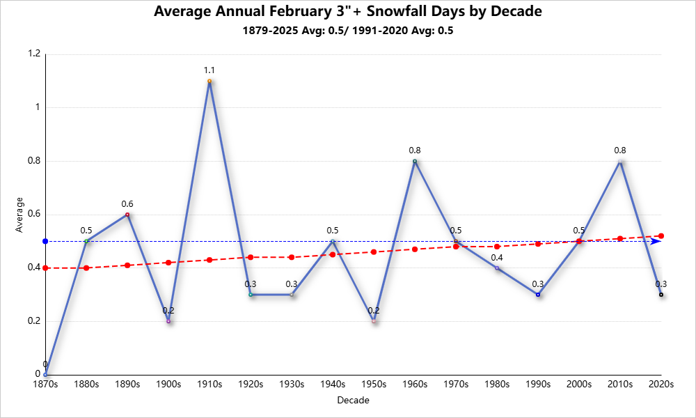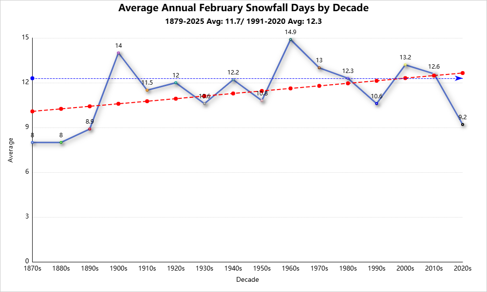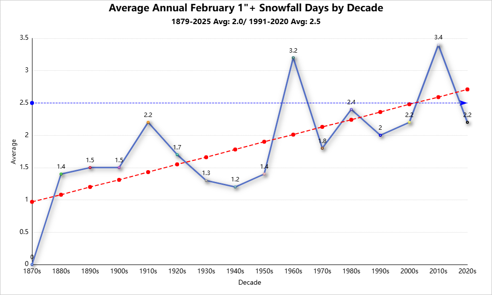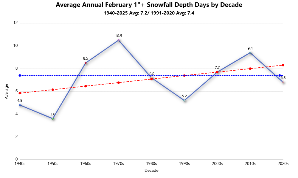 Top 5 Februarys with the Most 1″+ Snow Depth Days
