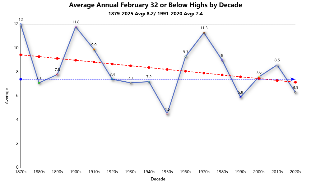 10. 2/12/1899, 2/2/1905, 2/3/1905, 2/9/1933, 2/19/1936, 2/8/1972, 2/6/1979, 2/10/1979: -6