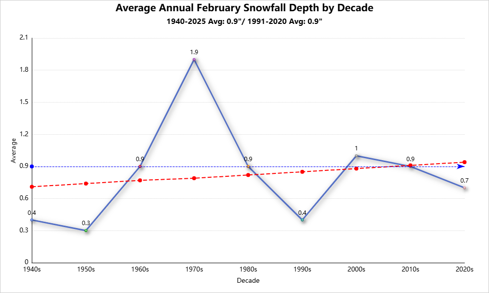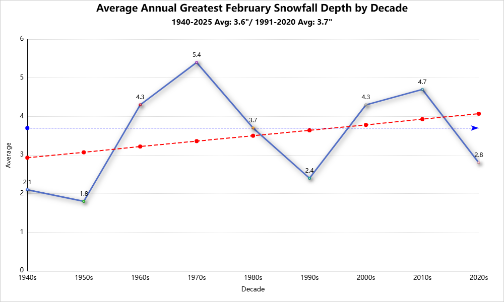 Top 5 Februarys with the Deepest Average Snow Depth Since 1940