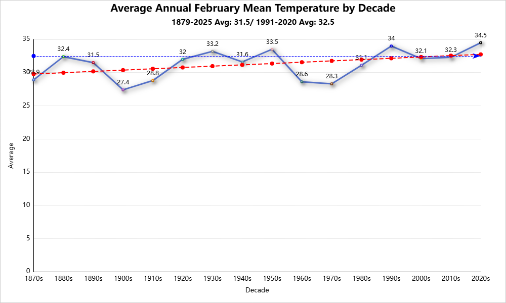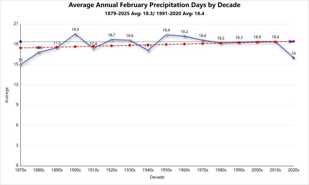 Top 5 Februaries with the Most Cloudy Days since 1914*