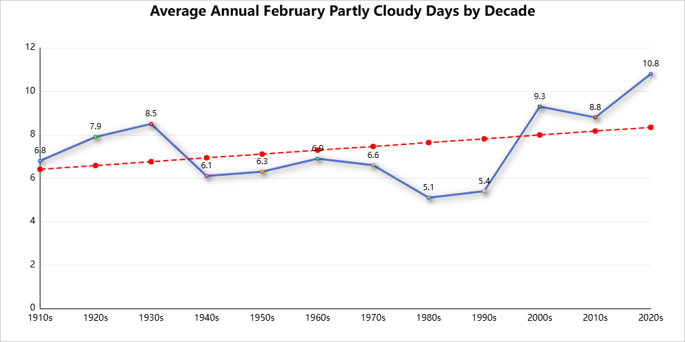 Top 5 Februaries with the Most Partly Cloudy Days since 1914*