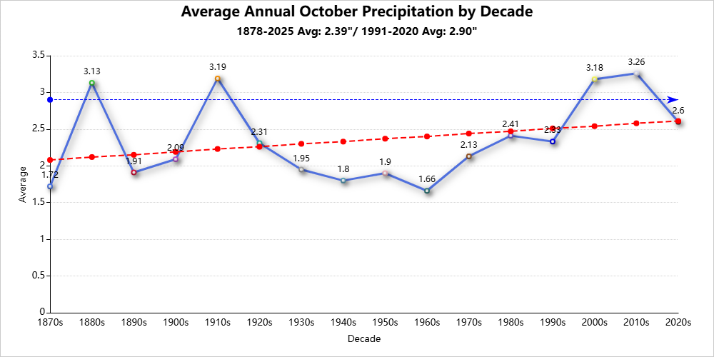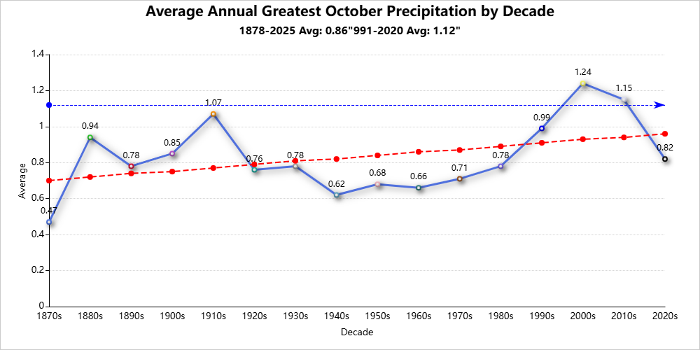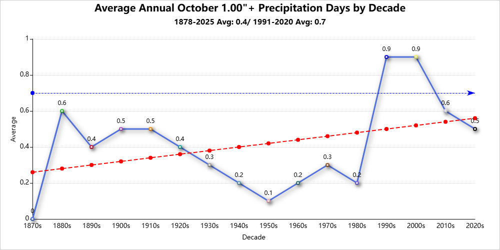 Top 5 Octobers with the Most 1″+ Precipitation Days