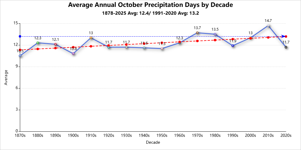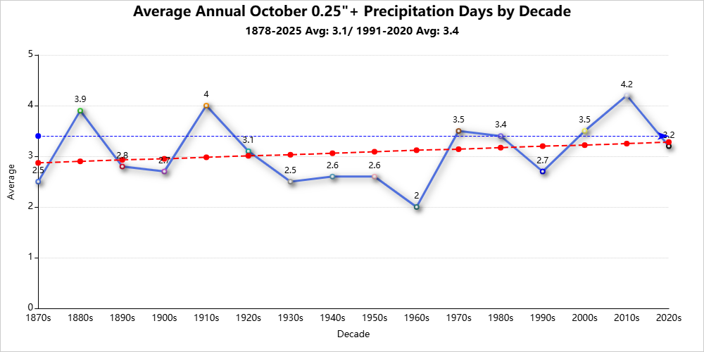 Top 5 Octobers with the Most 0.25″+ Precipitation Days