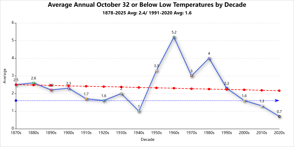Top 5 Octobers with the Most 2.5″+ Snowfall Days