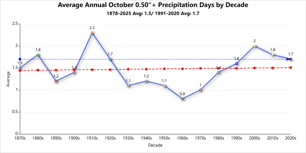 Top 5 Octobers with the Most 0.50″+ Precipitation Days