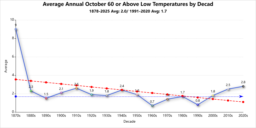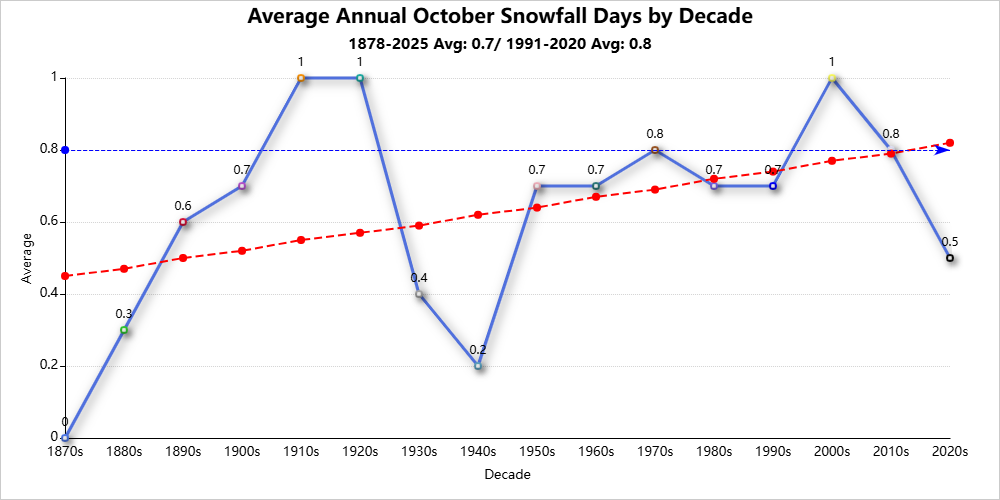 Top 5 Octobers with the Most 1″+ Snowfall Days