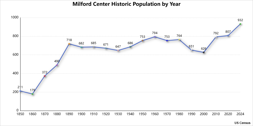 Suburban demographics Milford Center historic population