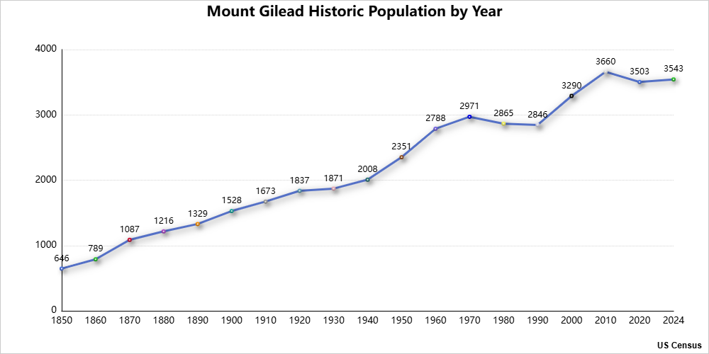Suburban demographics Mount Gilead historic population