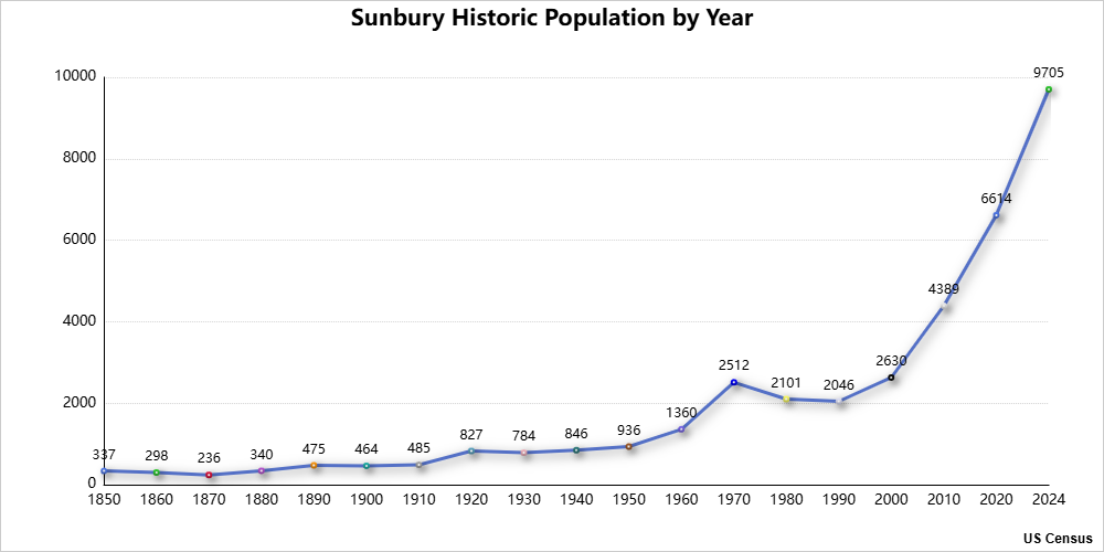 Suburban demographics Sunbury historic population