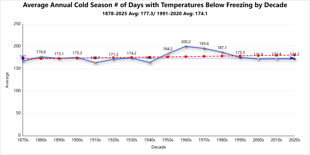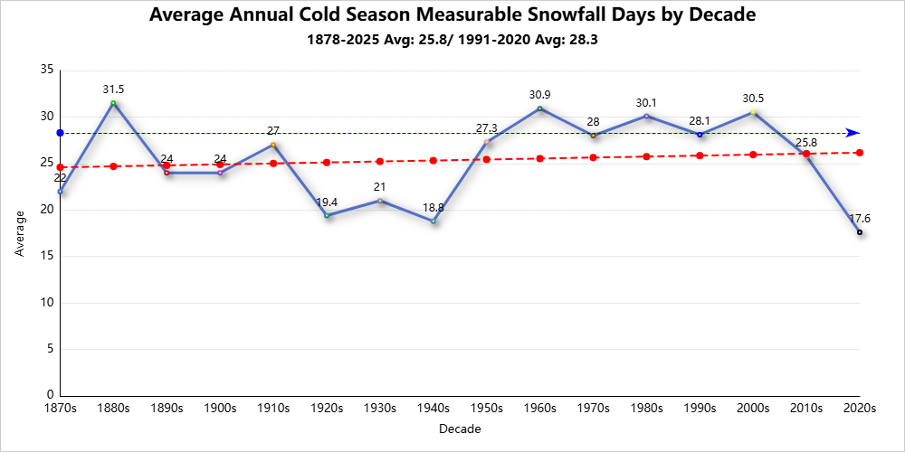 Top 10 Cold Seasons with the Fewest Measurable Snowfall Days