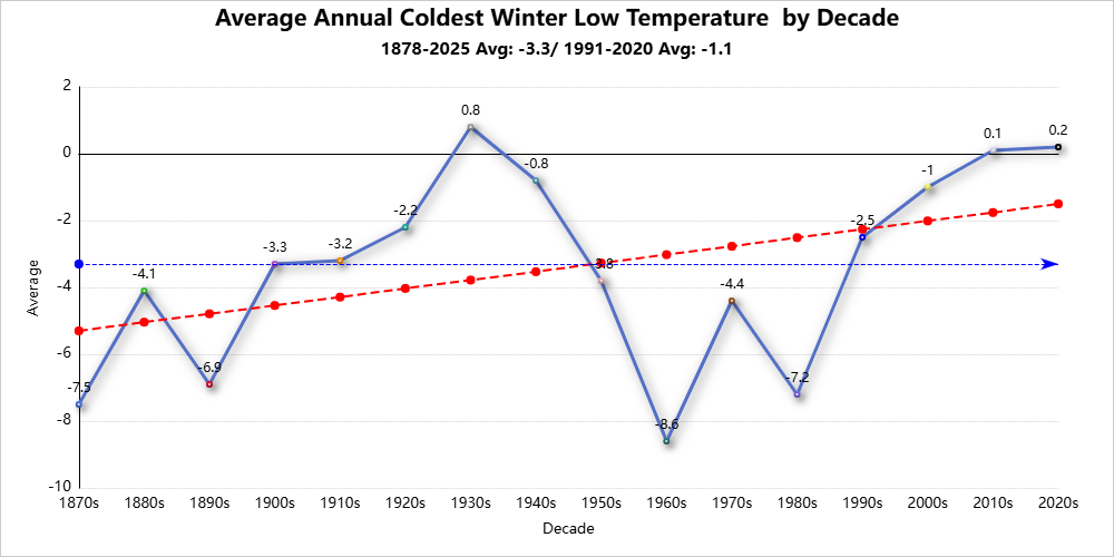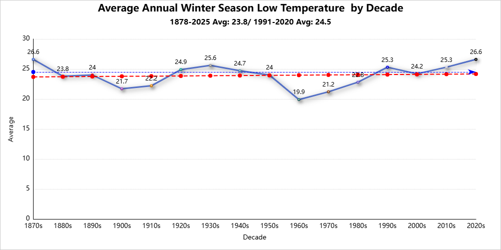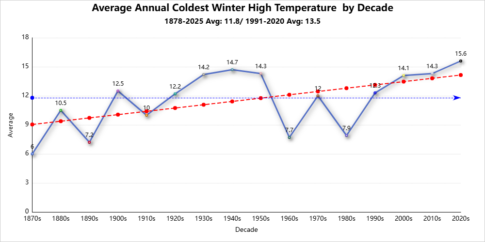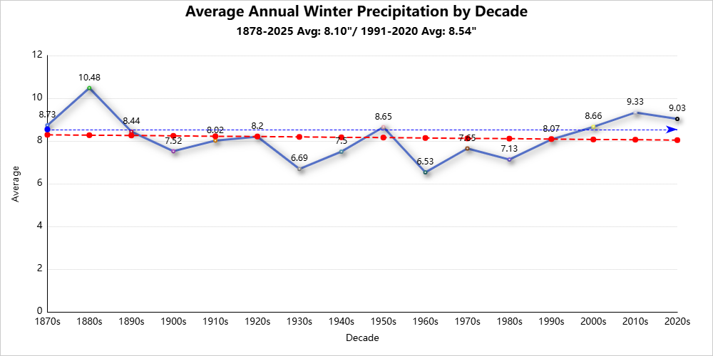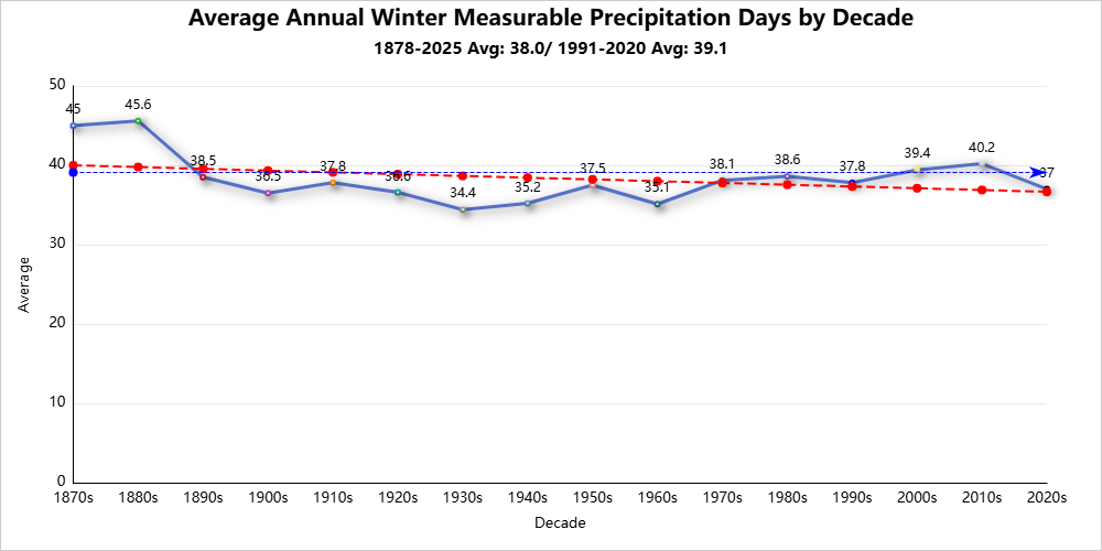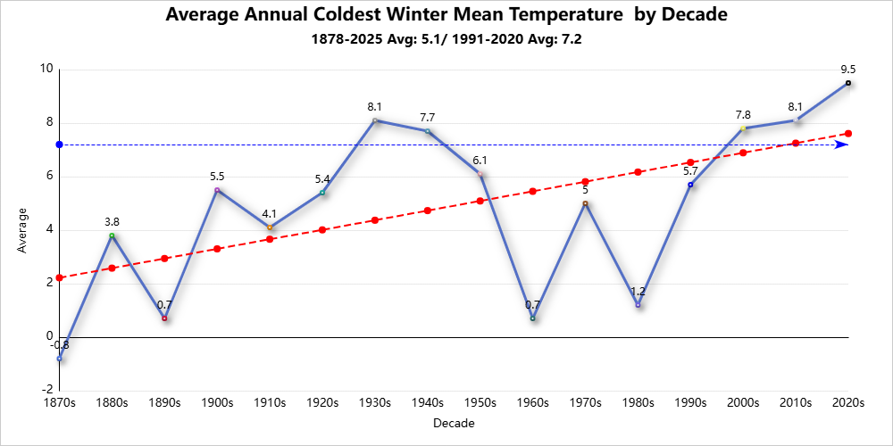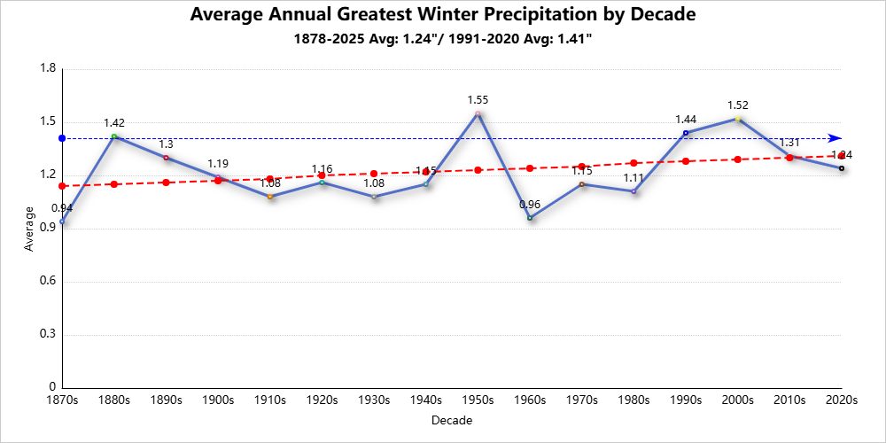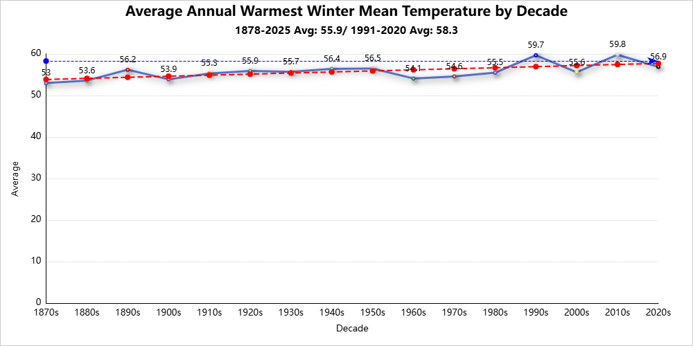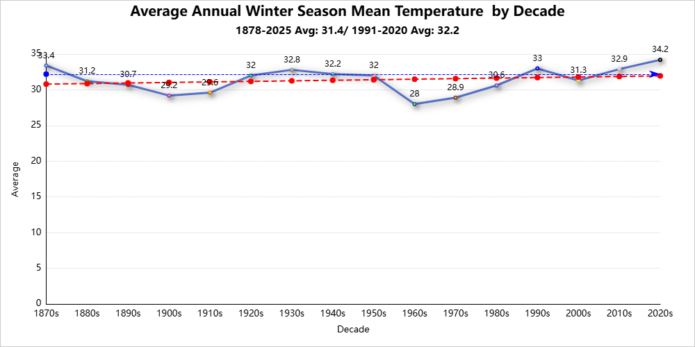 This page contains all winter season records 1878-2024. The records are for December-February only unless otherwise specified.